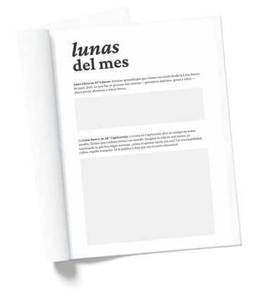 En la sección “Lunas del mes” tienes la Luna Llena y la Luna Nueva con una guía de energía. La idea no es “hacerlo perfecto”, sino registrar consciencia.