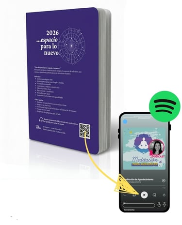 En la contraportada tienes un QR que te lleva a una meditación de Spotify. Te recomiendo empezar por ahí: 3–5 minutos para bajar el ruido y abrir el año con una intención clara.
