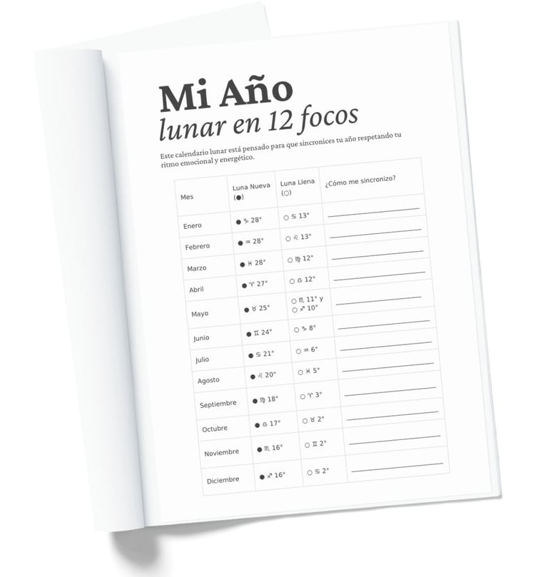 Esta página es para que el año no se te pase volando. Una vez al mes, vuelve aquí y completa la columna “¿Cómo me sincronizo?” con una sola frase. Ejemplos: